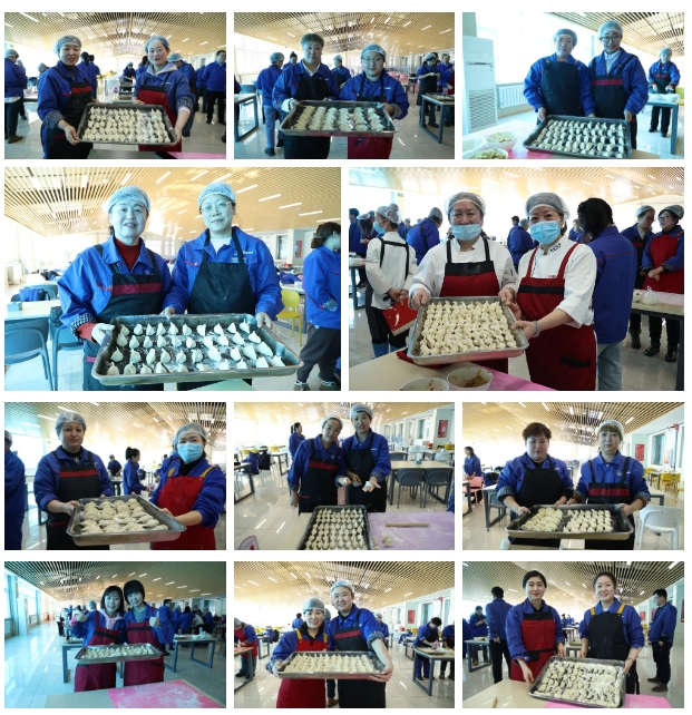 包饺子比赛更是体现出了团队协作精神,每组两名队员分工明确,各司其职。选手们纷纷亮出“绝活”,各显神通,包馅、捏边、摆造型,瞧,那灵巧的双手,熟练的动作,一手旋转饺子皮,一手挥舞擀面杖,把放进饺子馅的饺子皮捏褶出精致美丽的花边,眨眼间,一个个精巧美观的饺子在选手们的手中诞生了,似月牙、像风车、如元宝,活泼多姿,令人垂涎,比赛现场掌声此起彼伏,热闹非凡,参赛女职工们脸上洋溢着幸福的笑容。